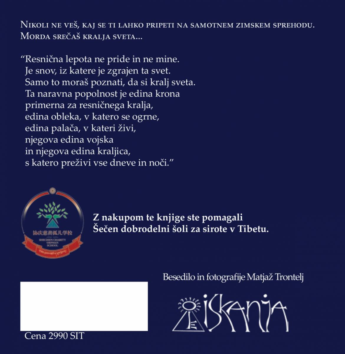 Matjaž Trontelj je napisal knjižico Kralj sveta v dolgih zimskih večerih visoko na tibetanski planoti. Nikoli ne veš, kaj se ti lahko pripeti na samotnem zimskem sprehodu. Morda srečaš kralja sveta …